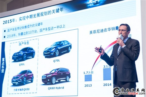 “經(jīng)過極速前進(jìn)的2014年,英菲尼迪品牌的發(fā)展已經(jīng)躍上了一個新的臺階。與此同時,中國汽車市場的環(huán)境正在經(jīng)歷深刻的變化,這既是我們發(fā)展道路上的機(jī)遇,也給我們提出了巨大挑戰(zhàn),”東風(fēng)英菲尼迪總經(jīng)理戴雷博士(Dr. Daniel Kirchert)表示!坝⒎颇岬弦仓袊,必須著眼于長期健康的發(fā)展。2015年,我們將著力在產(chǎn)品、品牌、經(jīng)銷商網(wǎng)絡(luò)、服務(wù)四大關(guān)鍵領(lǐng)域提升實(shí)力,打造‘敢愛全體驗(yàn)’,讓消費(fèi)者在每一個環(huán)節(jié)都能感受到‘最感性的豪華汽車品牌’的獨(dú)特魅力。”