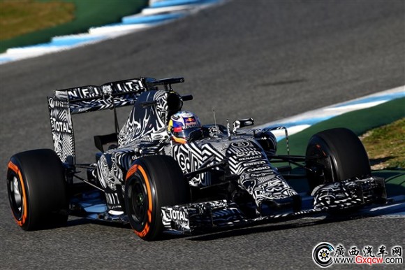 近日,2015賽季F1**輪季前測(cè)試在西班牙赫雷茲賽道激情上演,F(xiàn)1英菲尼迪-紅牛車隊(duì)全新戰(zhàn)車RB11黑白迷彩測(cè)試涂裝成為了賽道上矚目的焦點(diǎn)。此外,實(shí)力戰(zhàn)將里卡多攜新晉車手科維亞特完成了新車首秀,兩位極具活力的車手已為新賽季做好了充分的準(zhǔn)備。