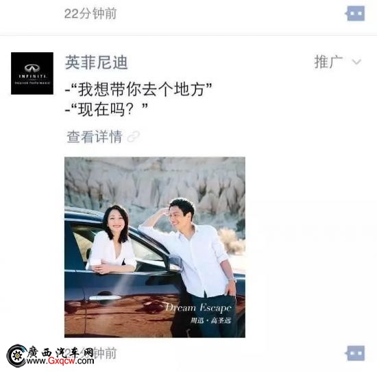 *后,很多人會(huì)發(fā)現(xiàn)自己的朋友圈被插入了一條廣告——是的,國產(chǎn)英菲尼迪QX50還趕上了朋友圈廣告熱騰騰的班車。