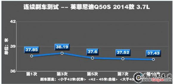 剎車踏板給予的反饋令人信心十足,車內(nèi)能明顯感覺到245mm的輪胎像要是要撕裂地面一樣相互做著強(qiáng)烈爭斗,最終平均剎車距離為37.6米,又刷新了在美國測試的38.22米的成績,也達(dá)到了性能車該有的水準(zhǔn)。