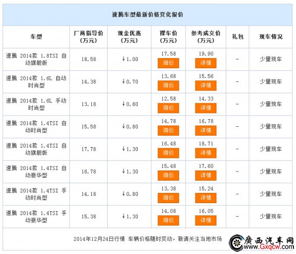 近日,一汽-大眾百色鑫廣達(dá)4S店內(nèi)速騰現(xiàn)車(chē)銷(xiāo)售,顏色可選,目前購(gòu)車(chē)部分車(chē)型可優(yōu)惠1.3萬(wàn)元,感興趣的朋友可以到臨時(shí)展示店:百色市右江區(qū)城東路拉域大橋旁或撥打我們銷(xiāo)售服務(wù):0776-2995466、18607763325(莫經(jīng)理)咨詢(xún)購(gòu)買(mǎi),詳情見(jiàn)下表:
