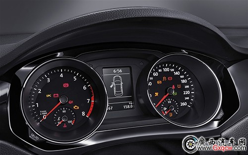 新速騰儀表盤采用了雙炮筒式的造型設(shè)計,延續(xù)了大眾簡潔明晰的風(fēng)格。此外高分辨率的液晶屏顯示信息也很豐富。