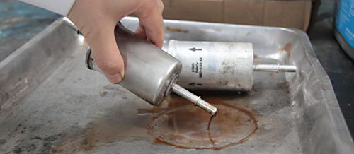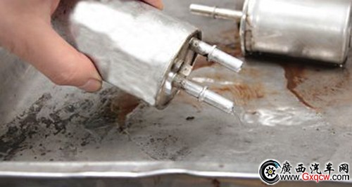 更換一個新的汽油濾清器后,在灌入汽油。通過濾清之后我們可以看到過濾后的機油顏色。