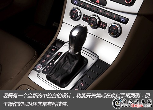 邁騰有一個全新的中控臺的設(shè)計,功能開關(guān)集成在換擋手柄兩側(cè),便于操作的同時還非常有科技感。