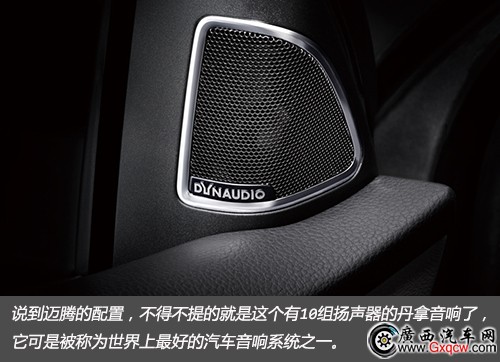 說到邁騰的配置,不得不提的就是這個有10組揚聲器的丹拿音響了,它可是被稱為世界上**的汽車音響系統(tǒng)之一。