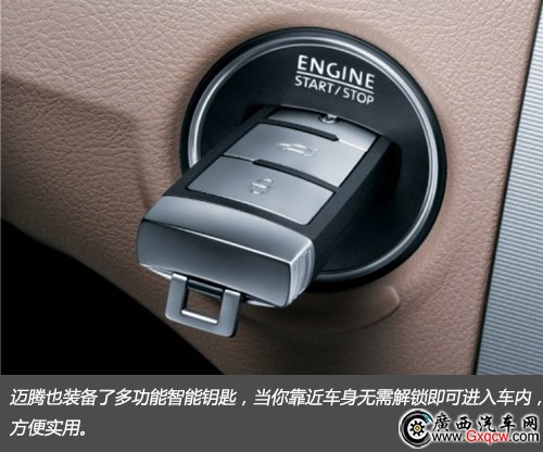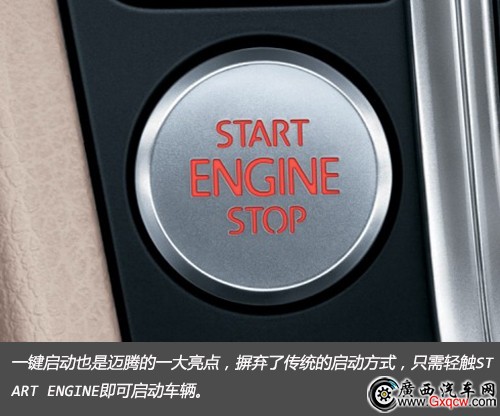 一鍵啟動也是邁騰的一大亮點,摒棄了傳統(tǒng)的啟動方式,只需輕觸START ENGINE即可啟動車輛。
