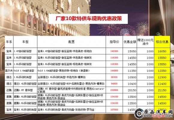 好消息,現(xiàn)廠家提供10臺特供車,想要買車不用等車展!不用去南寧!一汽-大眾鑫廣達店強勢進駐百色!直接底褲脫給你!本店承諾:廠家特供車同品牌買貴返差價!