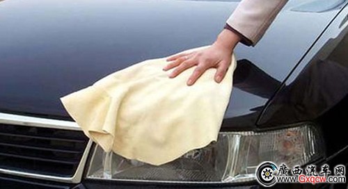 刮水后再用專用的吸水毛巾把車身表面抹干。