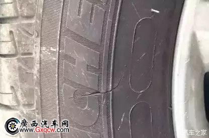 輪胎上存在的問題并不是全部集中在胎面上,輪胎側壁也會出現一些毛病。通過觀察查找輪胎側壁上那些肉眼直接可見的裂痕和切口。這些細小的溝槽預示著輪胎上未來可能出現的漏氣裂縫,更糟的話甚至引輪胎的爆裂,這些輪胎故障都是我們極力希望避免的。所以在輪胎側壁裂紋看起來比較嚴重的時候,還是以最快的速度把 車輛開往維修廠更換輪胎為上策。