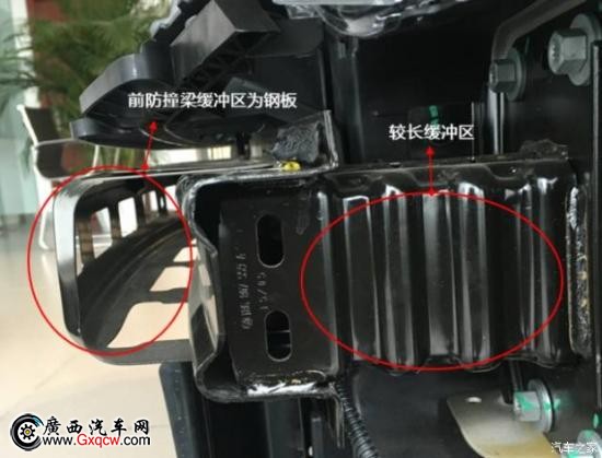 全新寶來的前防撞鋼梁布置最靠前,