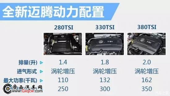 在動(dòng)力系統(tǒng)方面,新車(chē)將會(huì)搭載三款發(fā)動(dòng)機(jī),280TSI車(chē)型將會(huì)搭載EA211 1.4T發(fā)動(dòng)機(jī),330TSI車(chē)型搭載EA888 1.8T發(fā)動(dòng)機(jī),380TSI車(chē)型搭載EA888 2.0T發(fā)動(dòng)機(jī),在傳動(dòng)系統(tǒng)方面,1.4T發(fā)動(dòng)機(jī)匹配代號(hào)為DQ200的7速干式雙離合變速箱,1.8T和2.0T發(fā)動(dòng)機(jī)匹配代號(hào)為DQ380的7速濕式雙離合變速箱。