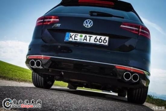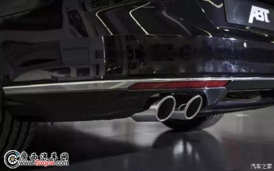 更低的前唇、外凸的側(cè)裙及后杠、雙邊共4出排氣、黑色進(jìn)氣隔柵、五輻雙色輪轂,ABT外觀改裝常用手法在這臺Passat Variant上均有體現(xiàn)。
