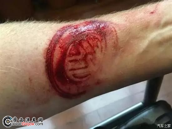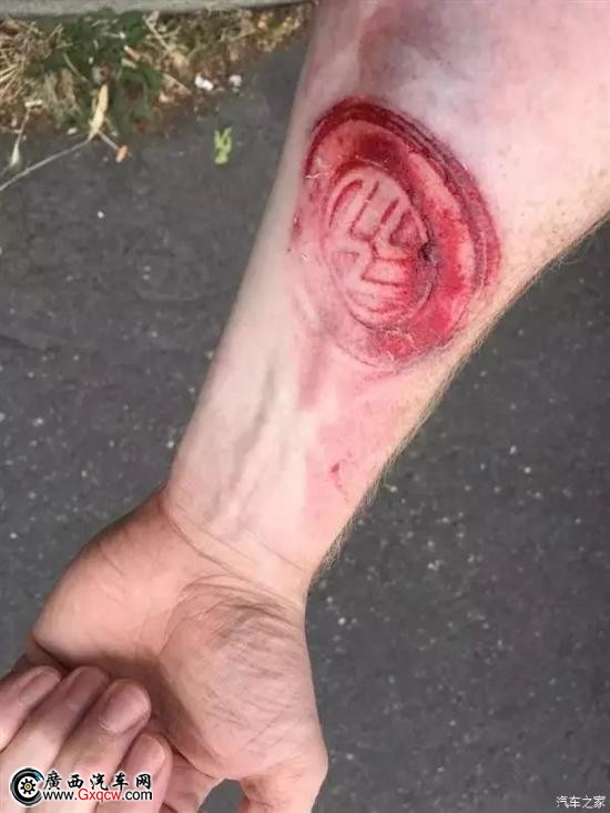 近日,美國另類金屬樂團(tuán)NOVA EYES貝司手Karl Whinnery駕駛他的高爾夫汽車,在經(jīng)過特蘭的第45大道與斯塔爾克街的時(shí)候遭遇了車禍,氣囊彈開救了他一命,但神奇的是方向盤中間的鍍鉻VW標(biāo)志,在他的胳膊上留下了“血的印記”......