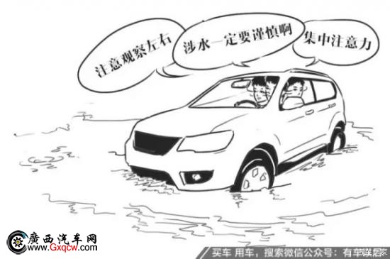 如必須要開車涉水通過,最簡(jiǎn)單的辦法就是觀察前車通過的路線和速度,比較一下看自己的車能不能順利通過。