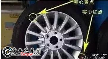 輪胎上的“黃點”是輪胎輕點標記,也就表示這條輪胎上這點處是最輕的位置。由于輪轂上需要安裝氣門嘴,而多出的氣門嘴則是輪胎上最重的位置,為了讓輪胎的受力更均勻,行車更安全,就必須在最重點處減重。這時,黃點最輕點處就要對應(yīng)氣門嘴,使氣門嘴部位的重量和其他部位相等,提高車輛的安全性。