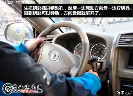 解決方法簡單,只要用力打方向盤的同時擰動鑰匙,一般很快就能解開方向盤鎖,點火也就是瞬間的事情了。