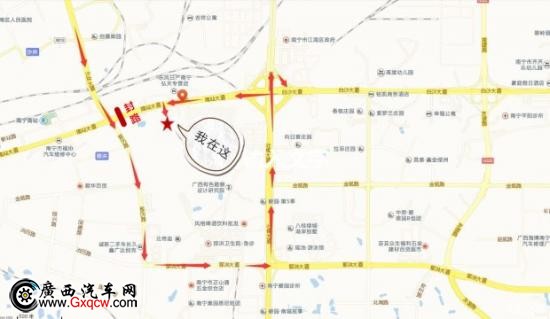 5. 南站大道直行至路口封路處掉頭即可到達廣西長久世達捷豹路虎4S中心