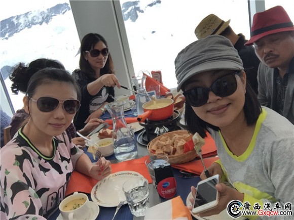 在海拔3454米的觀景平臺(tái)餐廳品嘗瑞士最有風(fēng)味的奶酪火鍋,車友們都說邊吃火鍋邊看雪景真是最美的享受!