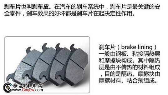 剎車(chē)片也叫剎車(chē)皮。在汽車(chē)的剎車(chē)系統(tǒng)中,剎車(chē)片是最關(guān)鍵的安全零件,所有剎車(chē)效果的好壞都是剎車(chē)片起決定性作用,所以說(shuō)好的剎車(chē)片是人和汽車(chē)的保護(hù)神。