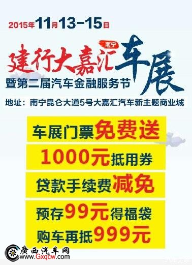 11月13-15日建行大嘉匯汽車展在南寧昆侖大道大嘉匯主題汽車城開展,廣西長久世達(dá)捷豹路虎全系鉅惠來襲,捷豹路虎全系貸款服務(wù)費(fèi)享2%!