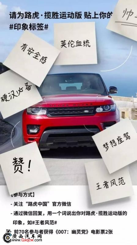 男主人公在街頭打到的“007路虎特工專車”,你是否也曾邂逅?#攬勝運動版#又給你留下了何種印象?現(xiàn)在,就請為它貼上你的印象標(biāo)簽!