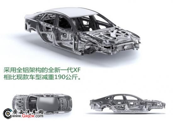 全鋁制架構(gòu)車(chē)身是全新XF的另一大賣(mài)點(diǎn),除了增加車(chē)身強(qiáng)度外相比現(xiàn)款車(chē)型減重多達(dá)190公斤,全車(chē)整備質(zhì)量相比同級(jí)別對(duì)手輕了不少,對(duì)于操控和燃油經(jīng)濟(jì)性的提升有一定幫助。