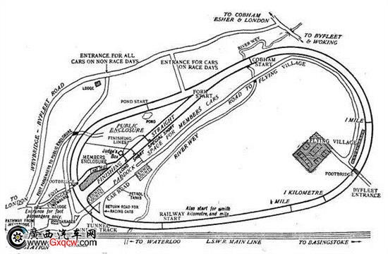 對(duì)于大多數(shù)人而言,這是一串并沒(méi)有關(guān)聯(lián)的地點(diǎn)和數(shù)字,而對(duì)于車迷而言,這串“密碼”其實(shí)代表著一處起源圣地。全世界**條賽車專用賽道——英國(guó)布魯克蘭賽道(Brooklands Circuit)。