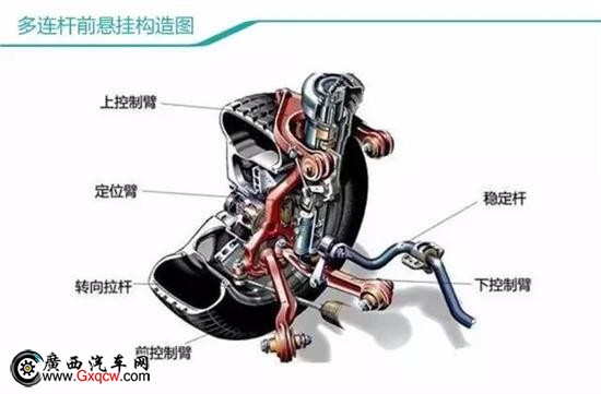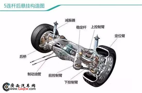 顧名思義,多連桿式懸掛就是指由三根或三根以上連桿拉桿構(gòu)成的懸掛結(jié)構(gòu),來提供多個(gè)方向的控制力,使車輪具有更加可靠的行駛軌跡。