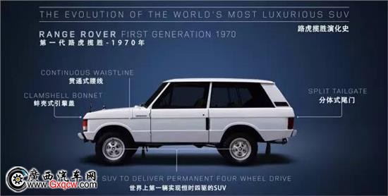 1970年,**代路虎攬勝發(fā)布,蚌殼式引擎蓋、貫通式腰線等經(jīng)典設(shè)計(jì)延續(xù)至今