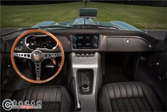 捷豹E-type Zero參考經(jīng)典設計進行了儀表盤與飾板的調整,并裝配了與E-type系列1造型相同的LED車燈以提升能效。