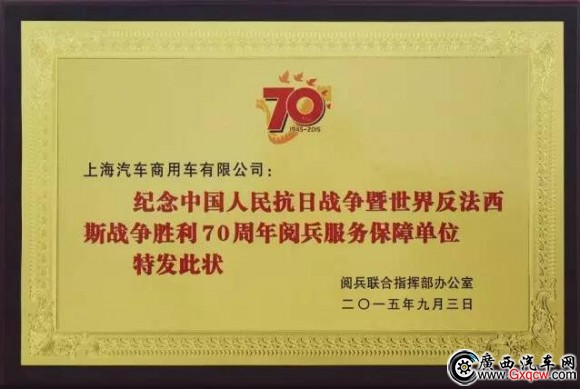 在大閱兵期間,上汽大通G10作為大閱兵指揮用車,表現(xiàn)出色,有力保障了軍隊(duì)指揮協(xié)調(diào)工作的順利進(jìn)行。為此,閱兵聯(lián)合指揮部在大閱兵結(jié)束后特向上汽大通頒發(fā)獎(jiǎng)牌作為嘉獎(jiǎng)。