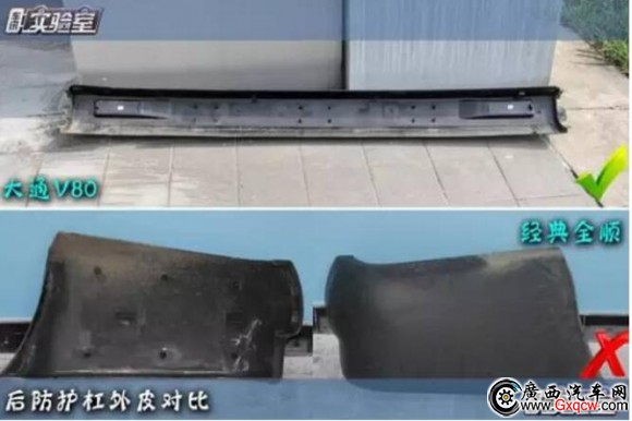 大通V80后防護(hù)結(jié)構(gòu)由后防護(hù)杠外皮以及后防護(hù)杠組成。防護(hù)杠外皮采用韌度較好的ABS材質(zhì),橫向覆蓋面積較大。經(jīng)典全順后防護(hù)杠外皮同樣也使用ABS材質(zhì),覆蓋面只有車尾左右兩側(cè)。兩車后防護(hù)杠外皮相比,大通V80全覆蓋式成本以及美觀度方面優(yōu)于經(jīng)典全順的分體式后杠皮。