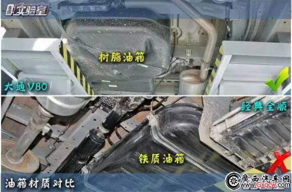 兩車在油箱材質的選用上有著本質區(qū)別,大通V80油箱材質選用樹脂材料,經典全順油箱材質為鐵質材料。重量、成本、造型、溫差是兩種不同材質油箱的主要區(qū)別,鐵質油箱自身重量大,成本較低,而且不易塑形,在大溫差下鐵質材料會出現(xiàn)凝露的現(xiàn)象,這對油箱內部是個考驗。鐵質油箱一般出現(xiàn)在低廉的乘用車上,或不需要輕量化設計的大貨車。