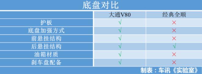 經典全順底盤兩側同樣貫穿兩條縱梁,通過圖片展示,經典全順底盤橫向加強結構明顯是“虛胖”,紫色部分為橫向加強筋,所用鋼板厚度比較單薄,而且結構也比較簡單。底盤前半部分的橫向加強結構分布不是很均勻。兩車底盤結構方面無需對比,客觀事實說明一切。
