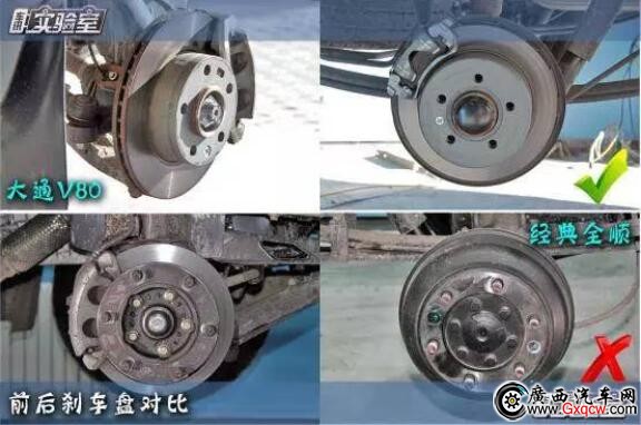 大通V80前后剎車為盤式制動,經典全順前剎車為盤式制動,后輪為鼓式制動。鼓式制動大多出現(xiàn)在低端乘用車以及重卡車型上。在非頻繁制動情況下兩種剎車結構并無太大區(qū)別。而在滿載情況下頻繁剎車,鼓式剎車散熱較差,容易造成剎車失靈,盤式剎車的散熱性能較為優(yōu)越。