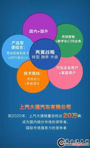 “兩翼齊飛 暢享未來”,2016年上汽大通將繼續(xù)以創(chuàng)新驅(qū)動(dòng)發(fā)展,以“大通速度”打破行業(yè)邊界,形成寬體輕客、MPV和SUV與皮卡的產(chǎn)品型譜組合,傳統(tǒng)發(fā)動(dòng)機(jī)和新能源汽車兩翼并舉的技術(shù)路線,并布局智能化大規(guī)模產(chǎn)品定制業(yè)務(wù),努力成為國內(nèi)細(xì)分市場的領(lǐng)導(dǎo)者、**市場強(qiáng)有力的競爭者,引領(lǐng)中國汽車品牌參與到**更高層面市場競爭。