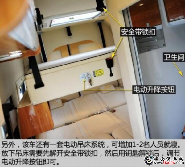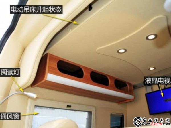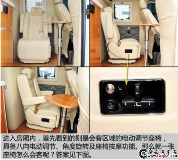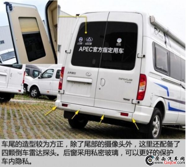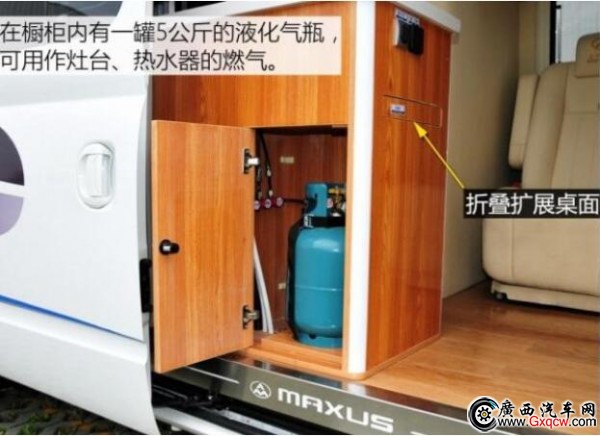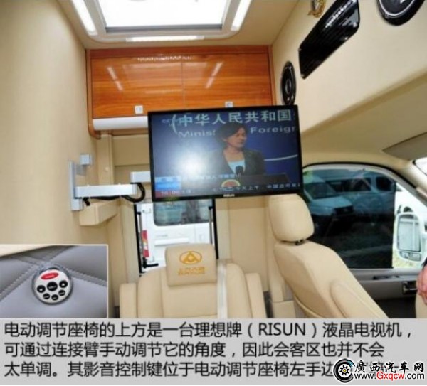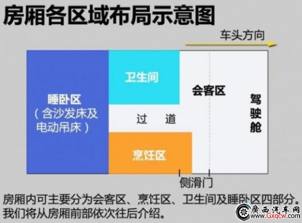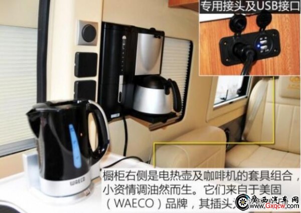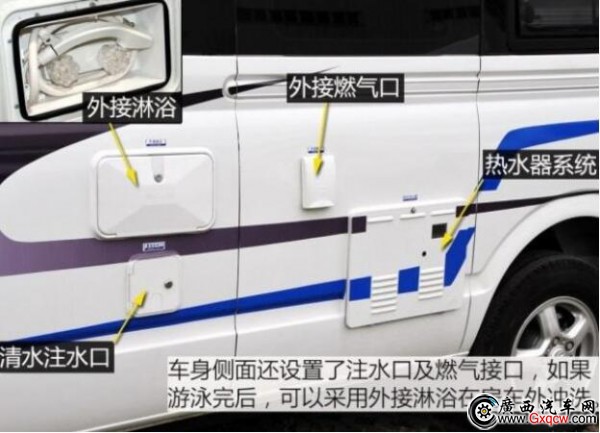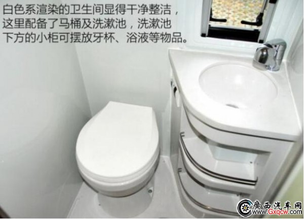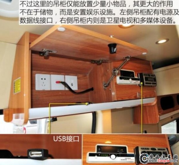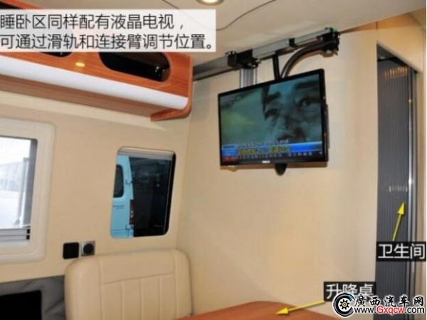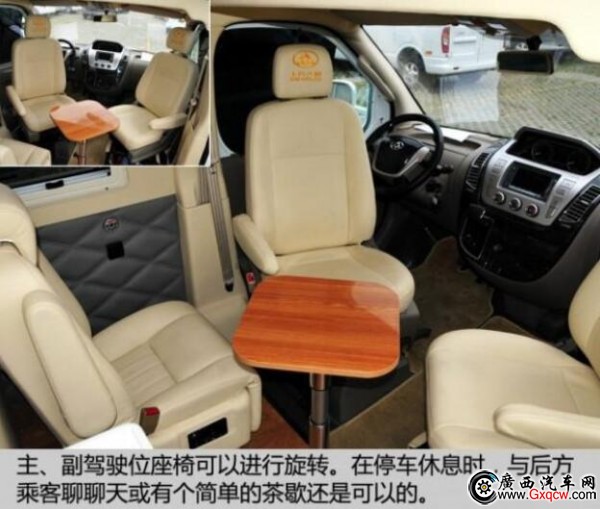 這款房車是將中后排的車廂直接當(dāng)作房廂而改造,也就是說,其駕駛艙與后部的房廂是一體相通的。