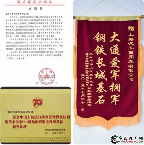 在去年萬眾矚目的9·3大閱兵上,上汽大通G10成為了大閱兵指揮用車,并獲得了閱兵聯(lián)合指揮部的感謝信以及“大通愛軍擁軍鋼鐵長城基石”、“紀(jì)念中國人民抗日戰(zhàn)爭暨世界反法西斯戰(zhàn)爭勝利70周年閱兵服務(wù)保障單位”稱號(hào)。