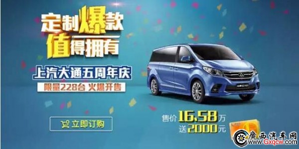 在2月28日這個(gè)品牌成立五周年之際,上汽大通通過(guò)五年時(shí)間的努力,不斷的打破著業(yè)內(nèi)一項(xiàng)又一項(xiàng)的記錄。值此品牌成立五周年之際,特此推出2016款官網(wǎng)爆款G10回饋廣大消費(fèi)者。