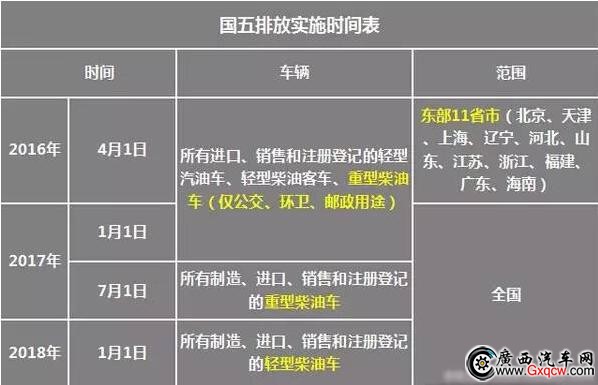 從2016年4月1日起,東部11省市(北京市、天津市、上海市等)的所有車輛均需滿足國五排放標(biāo)準(zhǔn)。