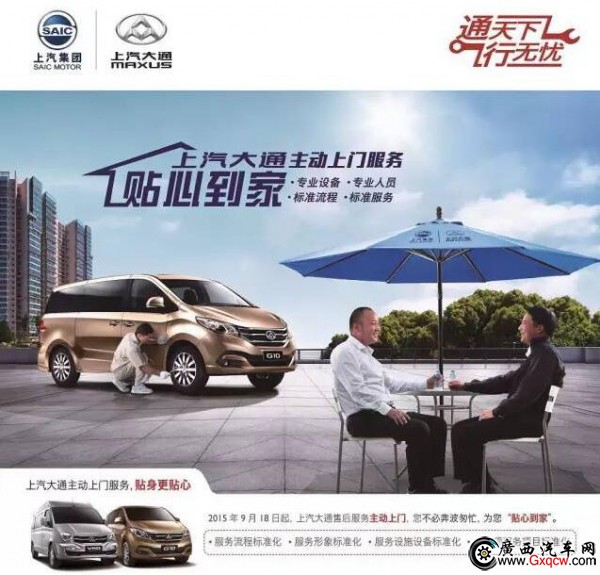 上汽大通向消費(fèi)者提供標(biāo)準(zhǔn)化的上門服務(wù),消費(fèi)者只要坐在家中或單位利用工作和生活間隙的碎片時(shí)間,就能“坐享”專業(yè)的愛車保養(yǎng)維修,不僅省去了車主在車輛維修路途中的時(shí)間成本,還節(jié)省了大筆油費(fèi)、過路費(fèi)等養(yǎng)車成本。