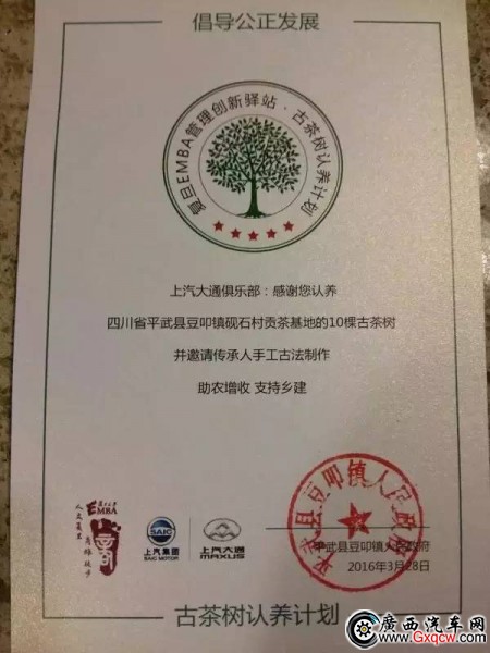 作為一家具有企業(yè)社會責(zé)任的汽車公司,上汽大通響應(yīng)號召,在當(dāng)?shù)卣J(rèn)領(lǐng)古茶樹,為中國的茶文化獻(xiàn)出自己的一份力量。