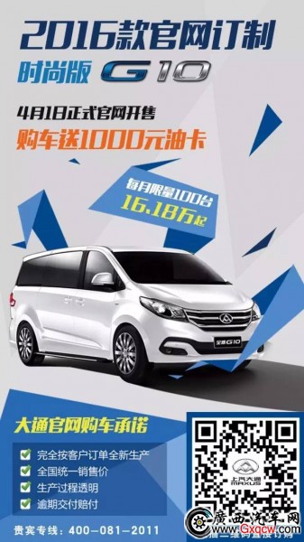 NO!NO!NO!2016官網(wǎng)訂制時尚版G10售價僅為: 16.18萬元