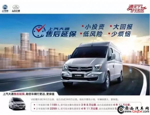 另外,對(duì)于V80、G10系列車型,上汽大通均提供了具有業(yè)內(nèi)**的售后服務(wù)保障方案,其中V80的3年8萬(wàn)公里動(dòng)力總成保修及2年5萬(wàn)公里整車保修承諾更是業(yè)內(nèi)**,樹(shù)立行業(yè)標(biāo)桿。另外,自2015年底開(kāi)始,上汽大通針對(duì)V80系列產(chǎn)品提供了1年3萬(wàn)公里或2年6萬(wàn)公里兩種原廠延保方案,這成為寬體輕客行業(yè)內(nèi)涉及零件范圍最廣以及質(zhì)保期限超長(zhǎng)的質(zhì)保承諾。