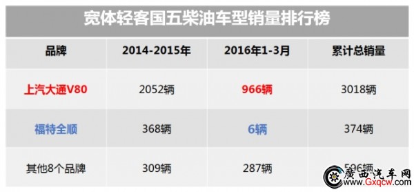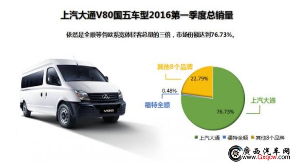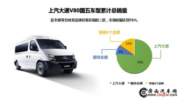 如今,上汽大通V80國五車型銷量在整個(gè)寬體輕客行業(yè)國五車型中位列**,市場份額達(dá)到76%,連續(xù)兩年成為歐系寬體輕客的國五市場領(lǐng)導(dǎo)品牌。