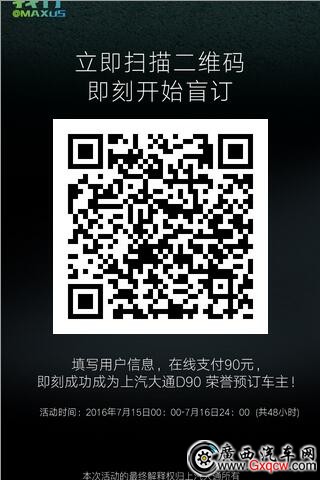 ●在注冊交互平臺c2b.saicmaxus.com的盲訂用戶中優(yōu)先抽取用戶免費參加D90系列活動,包括海內(nèi)外試駕活動、參觀定制化生產(chǎn)車間、廣州車展、新車定價發(fā)布會等