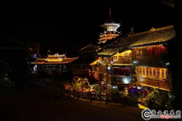 歌會結(jié)束,走出禮堂,耳邊還有余音繚繞的感覺,夜晚,三倆朋友漫步在侗寨古鎮(zhèn)中欣賞夜景,夜晚的侗寨金碧輝煌光彩奪目,又一次沉醉在貴州的風(fēng)情中。