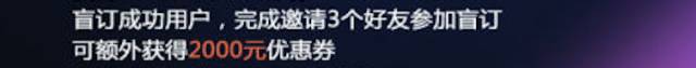 完成盲訂,可再減免2000元現(xiàn)金。完成邀請(qǐng)3個(gè)好友參加盲訂,可額外獲得2000元優(yōu)惠