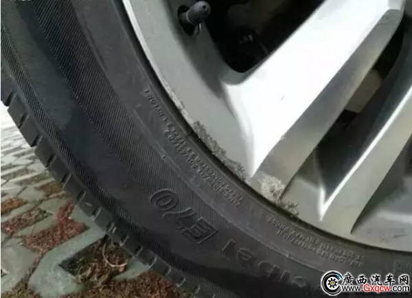 一位車主才買(mǎi)2年的車因?yàn)殚L(zhǎng)期使用劣質(zhì)輪胎油造成輪轂銹蝕。