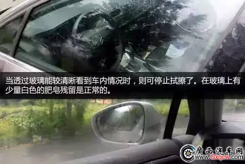清潔好玻璃后,玻璃上會(huì)殘留少量肥皂。從車內(nèi)看車外有些地方會(huì)稍顯模糊,但并不影響整體視野。